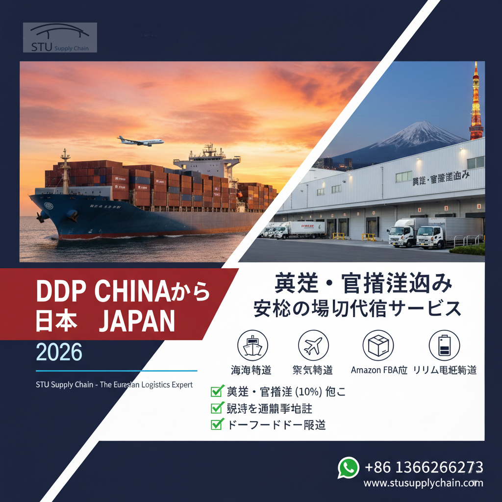 日本市場への進出には、正確な税関申告と迅速な物流が不可欠です。STU Supply Chain は、中国全土から日本(東京、大阪、名古屋、福岡など)への DDP (関税・消費税込み配送) 専門サービスを提供しています。お客様に代わって輸入者(ACP)の手配から納税まで対応し、あたかも国内取引のようなスムーズな輸入体験を実現します。