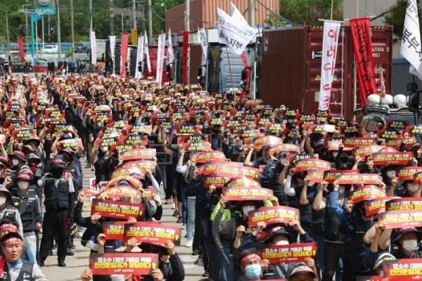 韓国全土の労働組合に所属する貨物トラック運転手約2万5000人が火曜日、燃料費高騰に対応して基本賃金を保障する政府の運賃制度の延長を求めて無期限のゼネストを開始した。数千人のトラック運転手が主要な港やコンテナ倉庫でストライキを行っており、貨物を買いだめし、港での出荷を遅らせたり停止したりしているが、これはすでに緊張している世界のサプライチェーンに対する最新の脅威となっている。